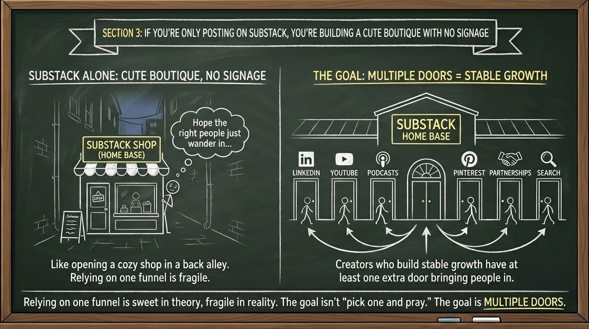 💡 Section 3: If You’re Only Posting on Substack, You’re Building a Cute Boutique with No Signage